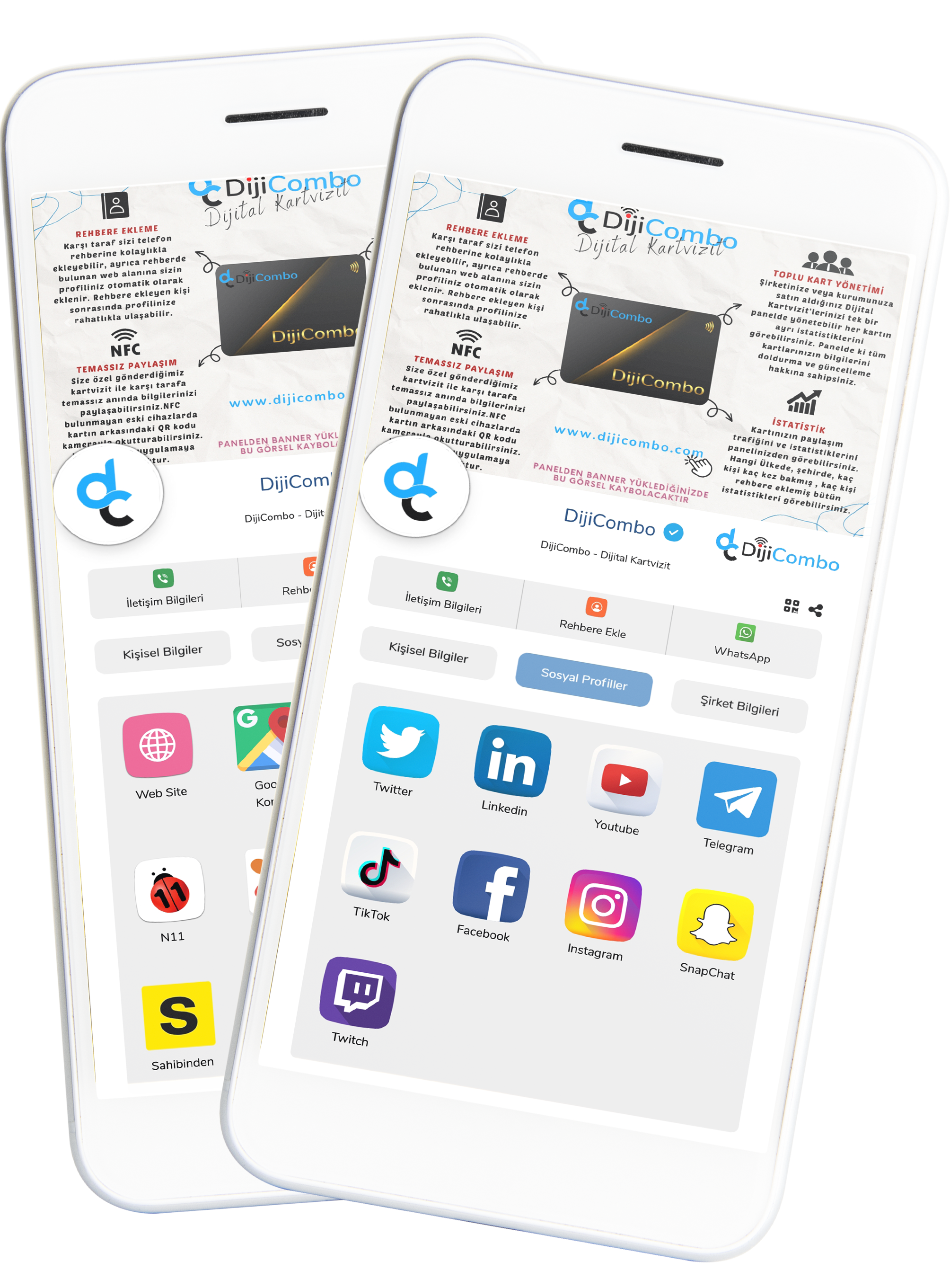 DijiCombo Dijital Kartvizit profil ve panel görüntüleri