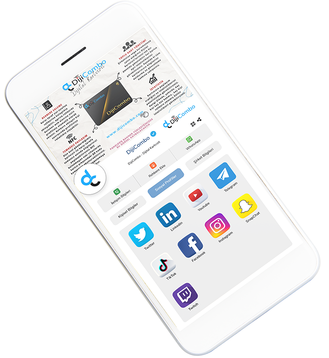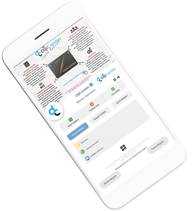 DijiCombo Dijital Kartvizit, ihtiyacınız olan tek kartvizit! Tüm iletişim bilgilerinizi sınırsız bir şekilde ömür boyu paylaşabilirsiniz. Kartvizitleriniz bir daha asla bitmez.